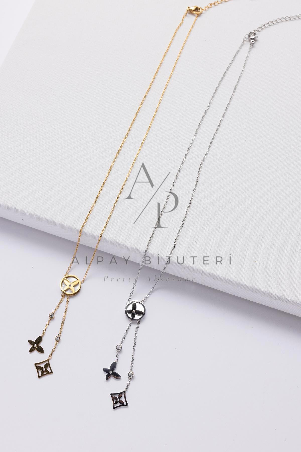 Çiçek Detay Çelik Kolye